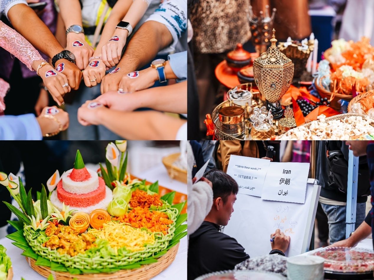 活动现场,各国文化展位人头攒动、热闹非凡。留学生们通过美食分享、服饰展示、语言教学、游戏互动等多种方式,生动展现了各自国家绚烂多彩的文化,让科大师生在欢声笑语中既品味到了异国风情,又加深了对各国文化的理解与尊重,体验了一场别开生面的文化盛宴。