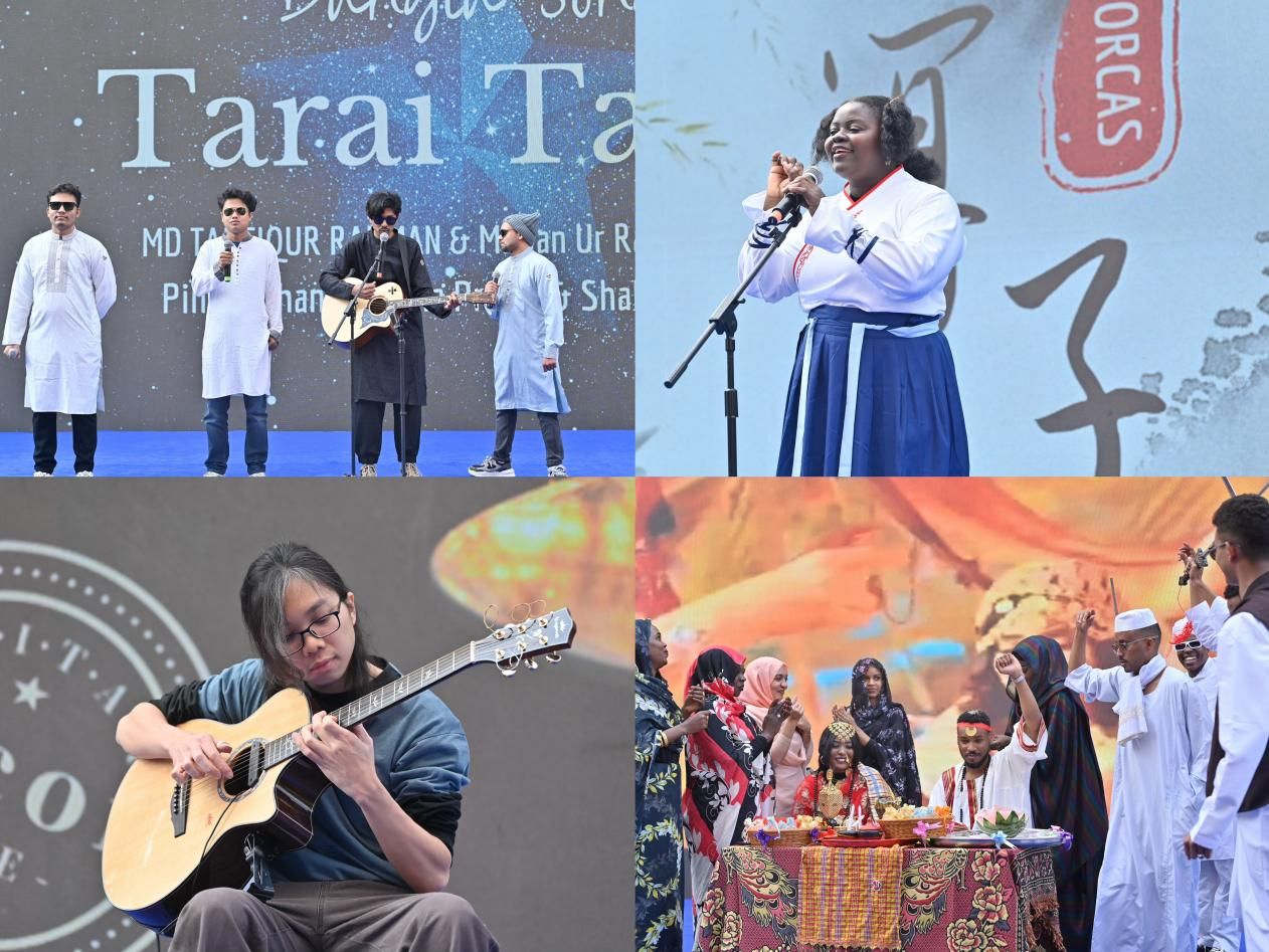 此外,孟加拉国的传统歌曲《Stars Stars》悠扬动听,尼日利亚同学的诗歌朗诵《卜算子》深情款款,马来西亚同学的吉他独奏清脆悦耳,苏丹传统的婚礼舞蹈更是风情万种。每一个节目都以其独特韵味和情感,深深打动了在场观众的心,彰显了不同文化的独特魅力。