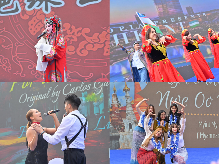 此次文化节的表演异彩纷呈,为广大师生献上了一场视听盛宴。京剧《锁麟囊》以悠扬婉转的程派唱腔,生动展现了京剧艺术的独特魅力与深厚底蕴;印度同学以热烈奔放的舞步,将观众带入璀璨的宝莱坞世界,仿佛身临其境;阿根廷与智利同学的探戈舞蹈,快慢错落、动静相宜,以力与美的完美融合倾诉衷肠;而来自巴基斯坦和乌兹别克斯坦的同学们联袂呈现的歌舞串烧,更是将文化交融的和谐之美展现得淋漓尽致,赢得了现场雷鸣般的掌声与欢呼。