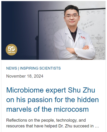 为庆祝Cell创刊50周年,Cell Press推出“50位启迪未来的科学家”栏目(50 Scientists that Inspire),聚焦全球范围内在科学研究中推动创新、跨越学科界限的卓越学者。中国科学技术大学朱书教授因其在微生物组与免疫系统交互领域的突破性研究成功入选并接受了Cell的专题采访,分享了他的研究历程、科学洞见以及对未来科学发展的展望。