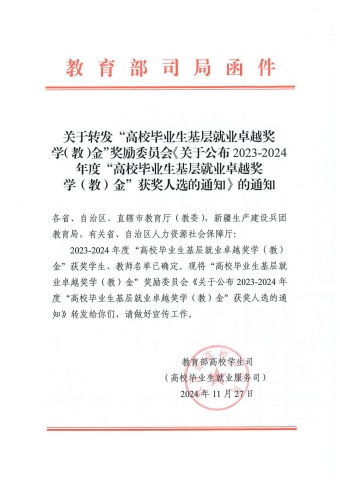 为深入学习贯彻习近平总书记重要指示精神,落实党中央、国务院关于引导和鼓励高校毕业生到基层就业的决策部署,由教育部高校学生司(高校毕业生就业服务司)、教育部学生服务与素质发展中心共同指导,中国长江三峡集团出资,中国教育发展基金会设立“高校毕业生基层就业卓越奖学(教)金”项目,用于奖励和表彰在基层就业方面做出突出贡献的高校毕业生和指导教师。