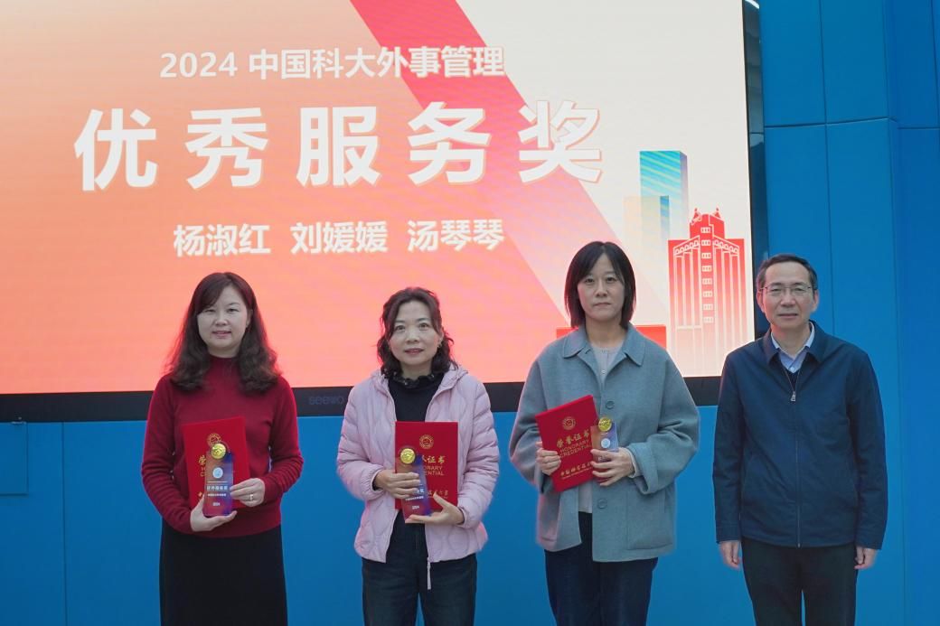随后,会议进入表彰环节。杨金龙为在2024年度外事管理工作中表现优秀的外事主管颁发了奖杯及荣誉证书,以表彰他们的辛勤付出和突出贡献。