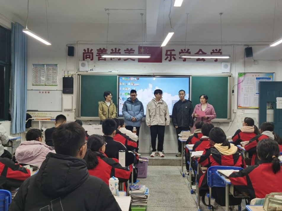 12月3日晚,物理学院团委书记刘珊珊带领几位物理学院优秀学子,来到四十六中海恒分校,为初三学生带来一场别开生面的科普讲座与学习经验分享会。此次活动围绕“老一辈科学家精神与科普讲座”“个人理想和规划”以及“成长与经验分享”三大主题展开,旨在激发初三学子们对科学的兴趣,引导他们树立远大理想,培养自主学习的能力。