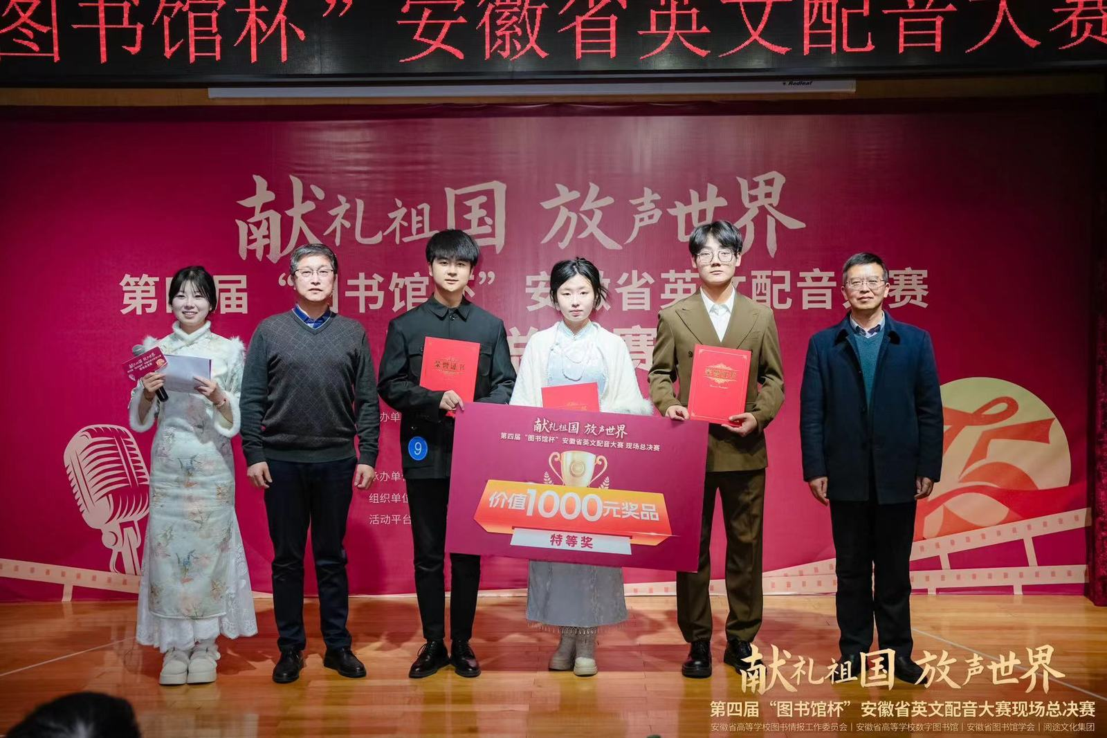 12月22日下午,以“献礼祖国·放声世界”为主题的第四届“图书馆杯”安徽省英文配音大赛总决赛在合肥市图书馆圆满落幕。本次比赛由安徽省高等学校图书情报工作委员会、安徽省高等学校数字图书馆、安徽省图书馆学会主办,大赛旨在推动文化自信自强,激发爱国情怀和民族自豪感,同时为广大读者提供多角度的英语学习服务,展示高校学子的英语风采和团队精神。