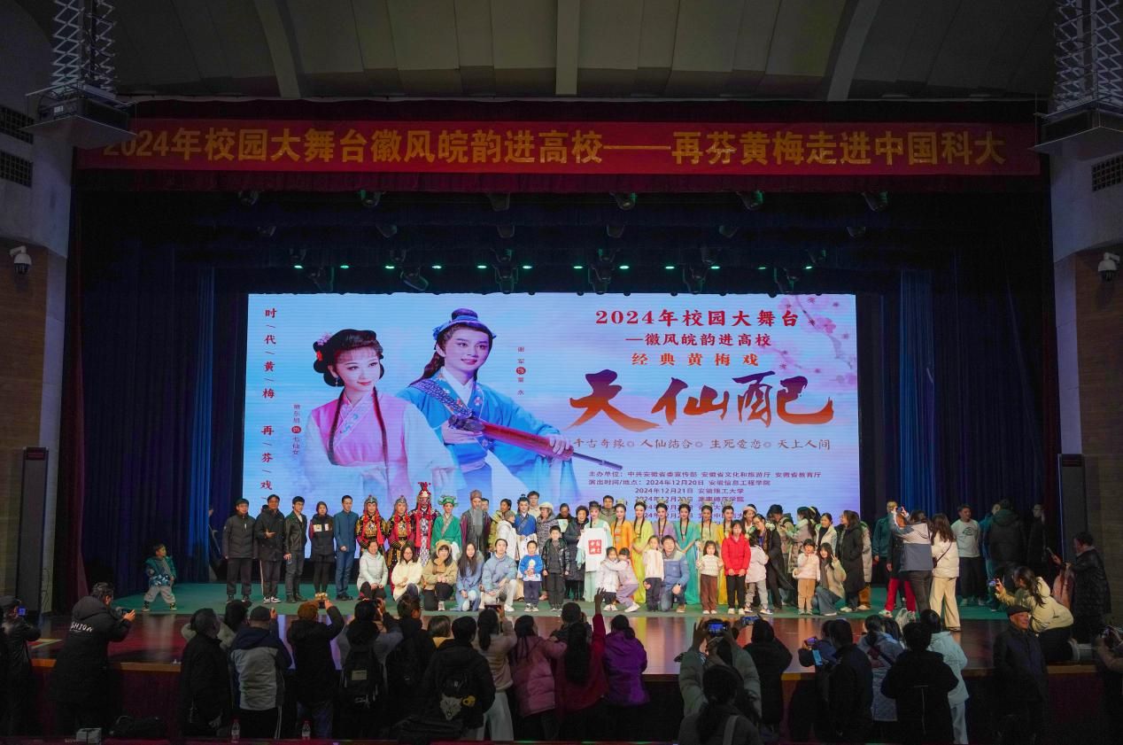 演出结束,全场掌声雷动,这是对演员们的感谢与赞美,也是对黄梅戏由衷的喜爱。随后,师生们争相上台合影留念,记录下这难忘的夜晚。今夜,余音绕梁;今夜,黄梅飘香!