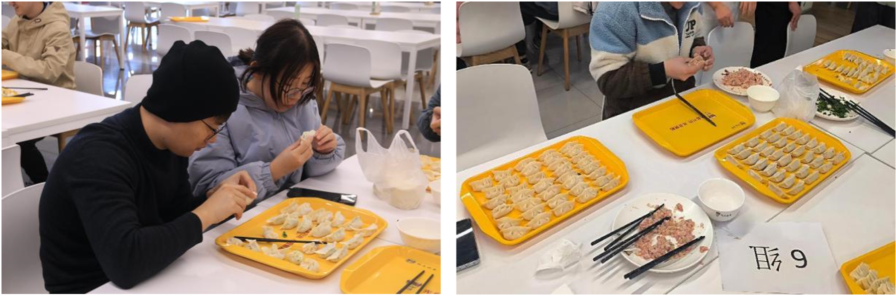 活动开场,主持人代表学院向大家致以诚挚祝福。在食堂工作人员的指导下,参与活动的全体师生纷纷投入到包饺子的实操环节。有的手艺娴熟,有的略显生疏,大家边包饺子边交流技巧心得,欢声笑语不断。在师生们的共同努力下,很快形状各异的饺子便摆满了餐盘。有传统包法的月牙饺,有地方特色的元宝饺,更有别出心裁的心形饺……一个个饺子蕴含着师生们对美食的浓浓热情和对生活的美好意趣。