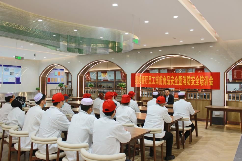 开展专项培训,严守食品安全底线。为贯彻落实“四个最严”要求,牢固树立为师生服务的思想意识,集团质检部深入餐厅,针对餐厅内外环境卫生、物资采购、质量价格、食品卫生等工作落实情况逐一进行检查指导。正式营业前,餐厅开展消防演练,对全体员工进行了消防知识和消防设施器材使用方法的讲解,增强了员工的消防安全意识,也提升了员工自救自护和遇险逃生能力。此外,还组织员工开展岗前培训,围绕从业人员健康管理、环境卫生、原料加工、烹饪、备餐、餐用具清洗消毒等重要环节的相关制度和操作规范进行详细讲解,强化食品安全教育,确保师生饮食安全,并要求员工加强与师生沟通交流,努力为师生提供更优质的服务。