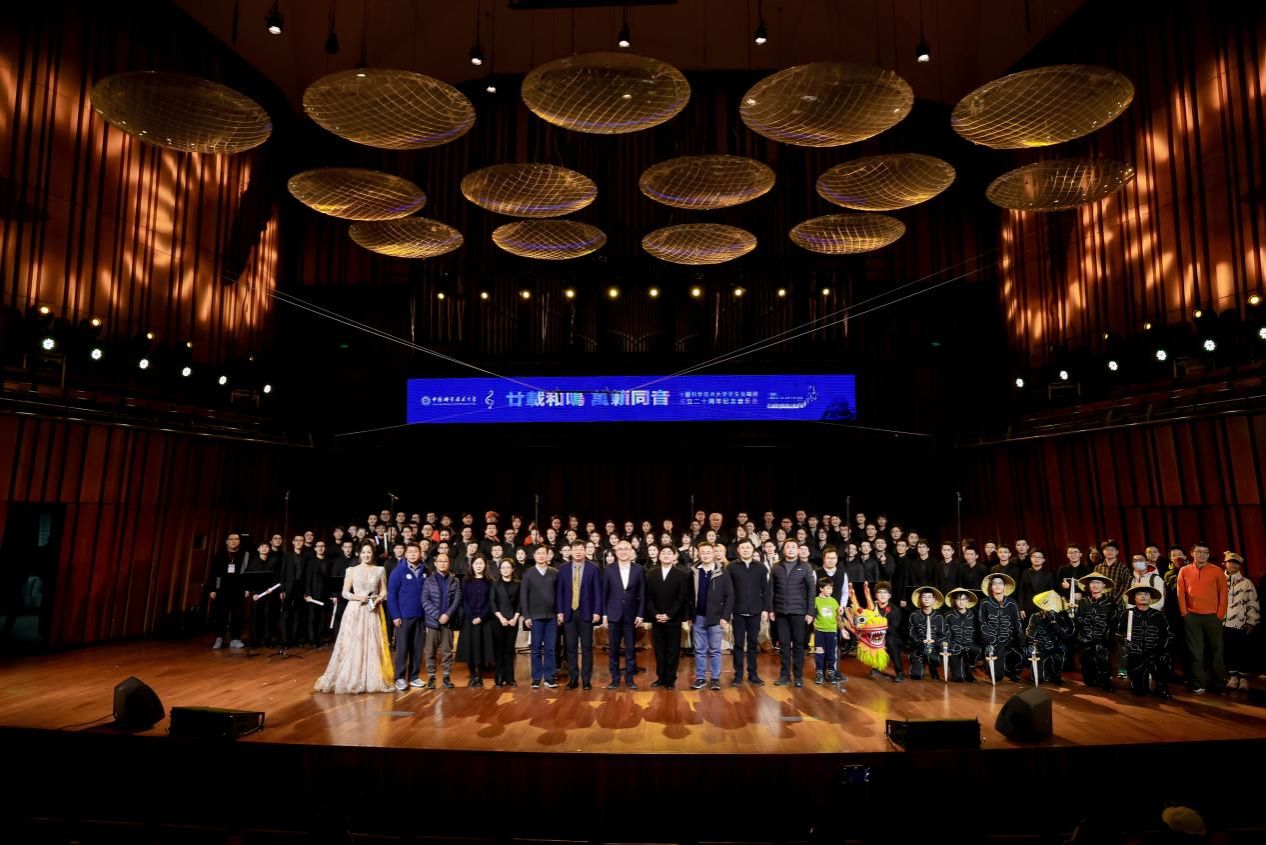 廿载和鸣,万籁同音。12月28日晚,校学生合唱团成立二十周年专场音乐会在合肥大剧院举办。校领导,相关职能部门、学院负责人,校友和捐赠人代表,附属第一医院医务工作者,校内师生代表、最美“六有 ”大学生获奖者和有关中学师生代表等参加音乐会。