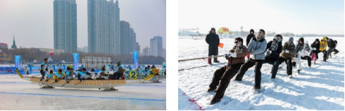 冰上龙舟比赛和雪地拔河赛不仅是对体力和技巧的考验,更是对团队协作和精神力量的挑战。大家迅速适应了冰上龙舟的独特技巧,快速掌握了雪地拔河的关键要领,显示了队员们强大的适应性和学习能力,也充分展示了中国科大龙舟队的实力和风采。