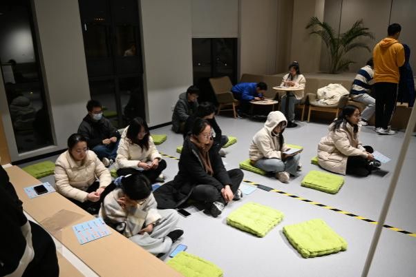 12月21日晚,活动正式拉开序幕。现场设置了五个与主题相关的趣味游戏摊位,同学们积极参与,现场欢声笑语不断。在“趣味手机称重”活动中,同学们寻找与手机重量相同的物品,锻炼了观察力和判断力,并提醒自己不要让手机成为生活中过“重”的负担;“科大纪念拼图”活动增强了同学们对学校的归属感和热爱之情,培养了耐心和专注力;“羽毛球定位发球”和“蒙眼夹乒乓球”活动充满挑战性和趣味性,让同学们感受到运动的活力与激情;“发呆大赛”则在这个快节奏的时代为同学们提供了一个放松的机会,让大家在忙碌中寻找片刻的宁静,调整心态,以更加饱满的精神投入到学习和生活中去。