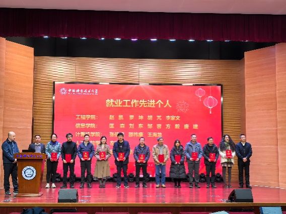 朱林繁对2024年度学校毕业生就业和本科招生工作进行了回顾总结,他指出,2024年在校党委和校领导的坚强领导下,在社会各界的大力协助下,学校本科招生和就业工作成绩显著,本科生源质量持续高居国内高校前列,毕业生就业落实情况稳中有进,全校各单位、各院系、师生们积极参与,共同努力,涌现了一批先进集体和个人。随后,招生就业处副处长、就业办公室主任徐栋哲,招生就业处副处长、招生办公室主任王浩波分别宣读了《关于表彰2024年学校毕业生就业工作先进集体和先进个人的决定》和《关于表彰2024年本科招生工作先进集体和先进个人的决定》,并对少年班学院等32个就业工作先进集体、姚奇志等75名就业工作先进个人,天津招生组等31个先进招生集体、金嗣炤等156名先进招生个人予以表彰。周丛照和朱林繁为获奖集体和个人颁发了奖牌和证书。