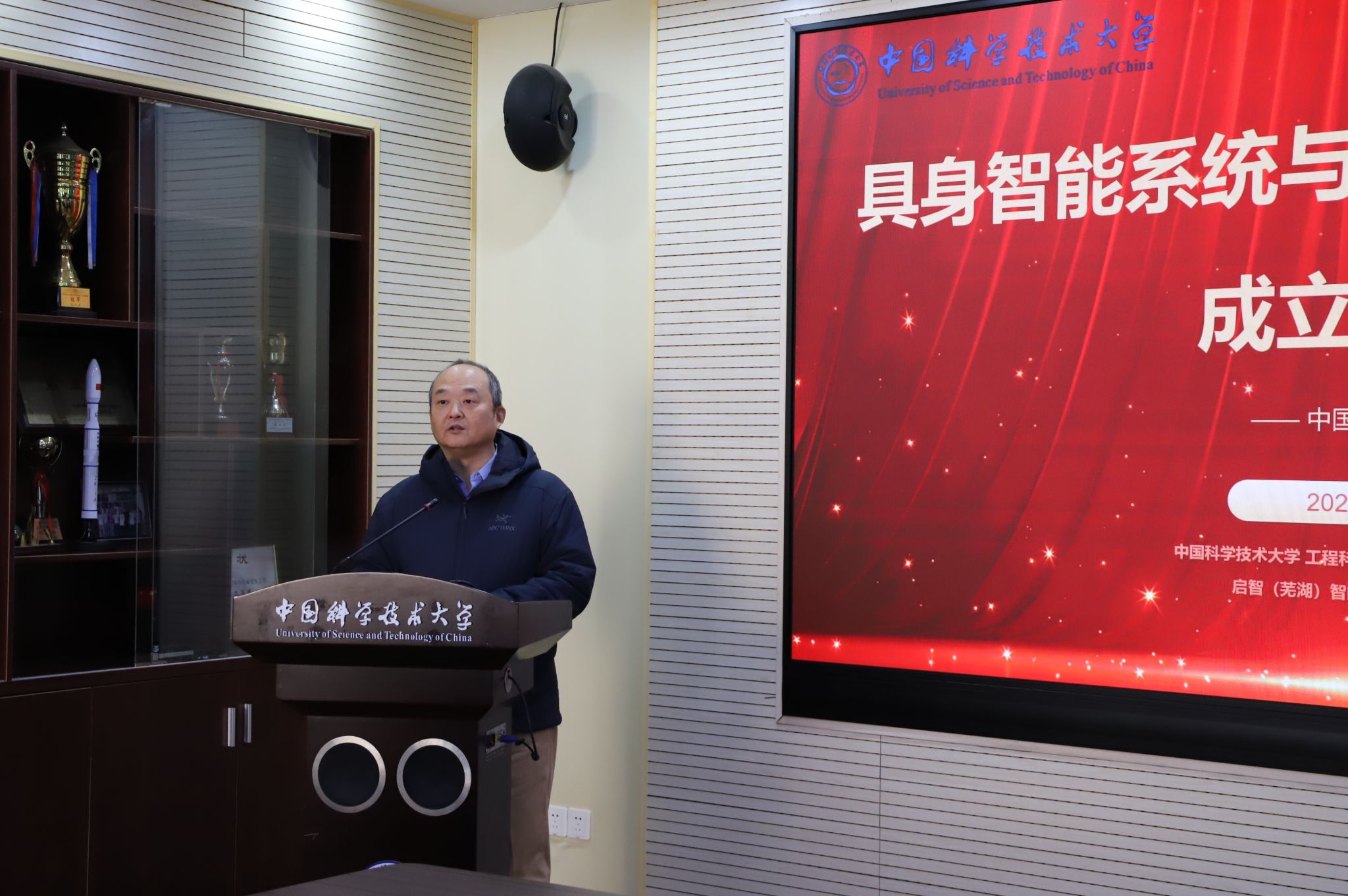 吴枫在致辞中表示,具身智能系统与控制联合实验室(以下简称“联合实验室”)的成立是我校与启智(芜湖)智能机器人有限公司在具身智能和人形机器人研究领域携手合作的一件大事、好事,希望联合实验室始终坚持创新驱动的发展理念,注重人才队伍建设与培养,加强管理和运行机制的建设,为技术进步与成果转化、服务国家战略和推动经济社会发展做出更大贡献。