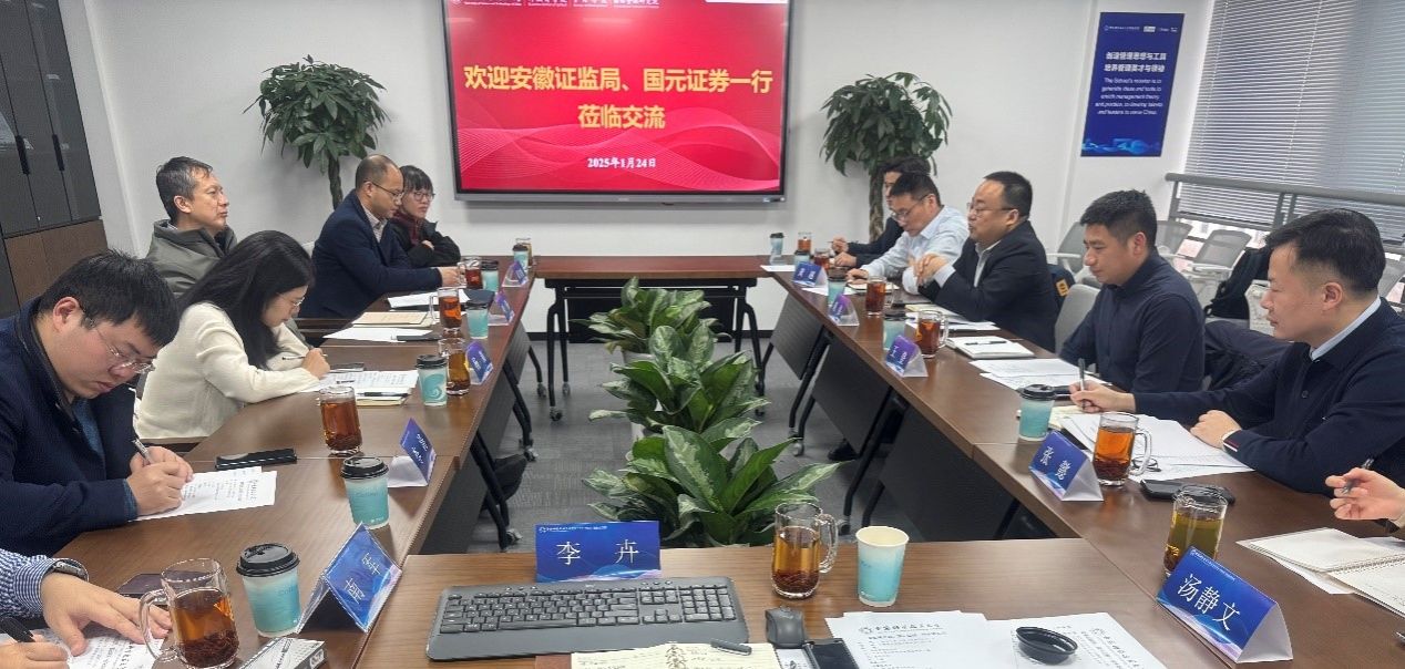 1月25日,安徽证监局信息调研处处长王登,国元证券党委副书记、总裁胡伟等一行来访,管理学院、科技商学院执行院长,国金院院长叶强,特任研究员杨青、姜贺敏,特任副教授李涛、高梦海等接待并介绍了学院相关情况,三方针对聚焦金融科技领域合作、共促资本市场发展进行了充分讨论。