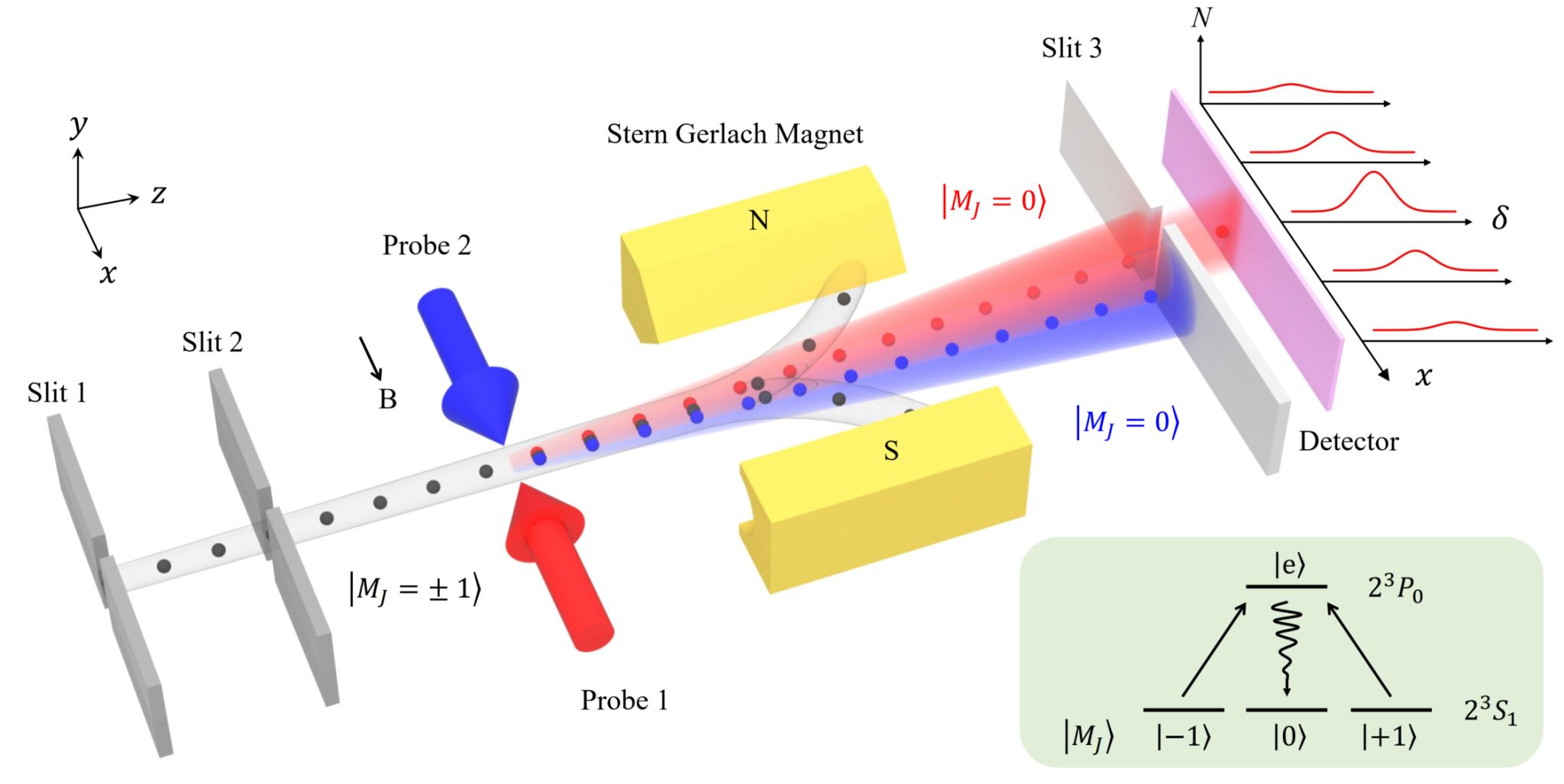 2月28日,中国科大激光痕量探测与精密测量研究团队在《科学进展》(Science Advances)上发表题为“Postseletion shifts the transition frequency of helium in an atomic beam”的最新研究成果。该研究揭示了量子力学后选择效应对氦原子光谱跃迁频率精密测量的显著影响。