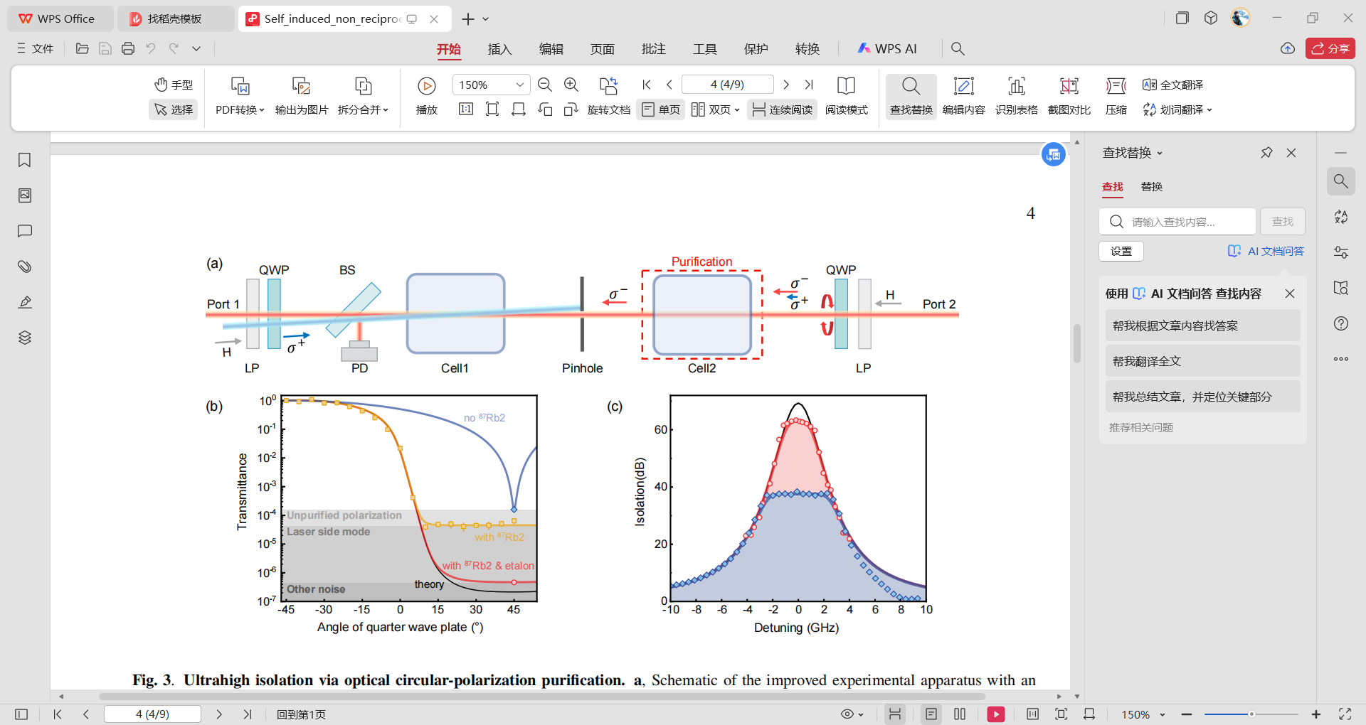 基于自诱导非互易原理,团队在原子系综介质中实现的隔离器具有63.4 dB的隔离比(如图2c所示),创造了当前世界上无磁非互易的最高纪录。同时,该隔离器在12.5 GHz的带宽内实现了超过20 dB的隔离效果,带宽比以往同样基于原子系综的隔离器高出一个数量级。此外,自诱导非互易还展现出在高消光比圆偏振纯化器中的应用潜力,能够产生纯度超过60 dB的圆偏振光,并对入射光偏振状态具有较强的鲁棒性。