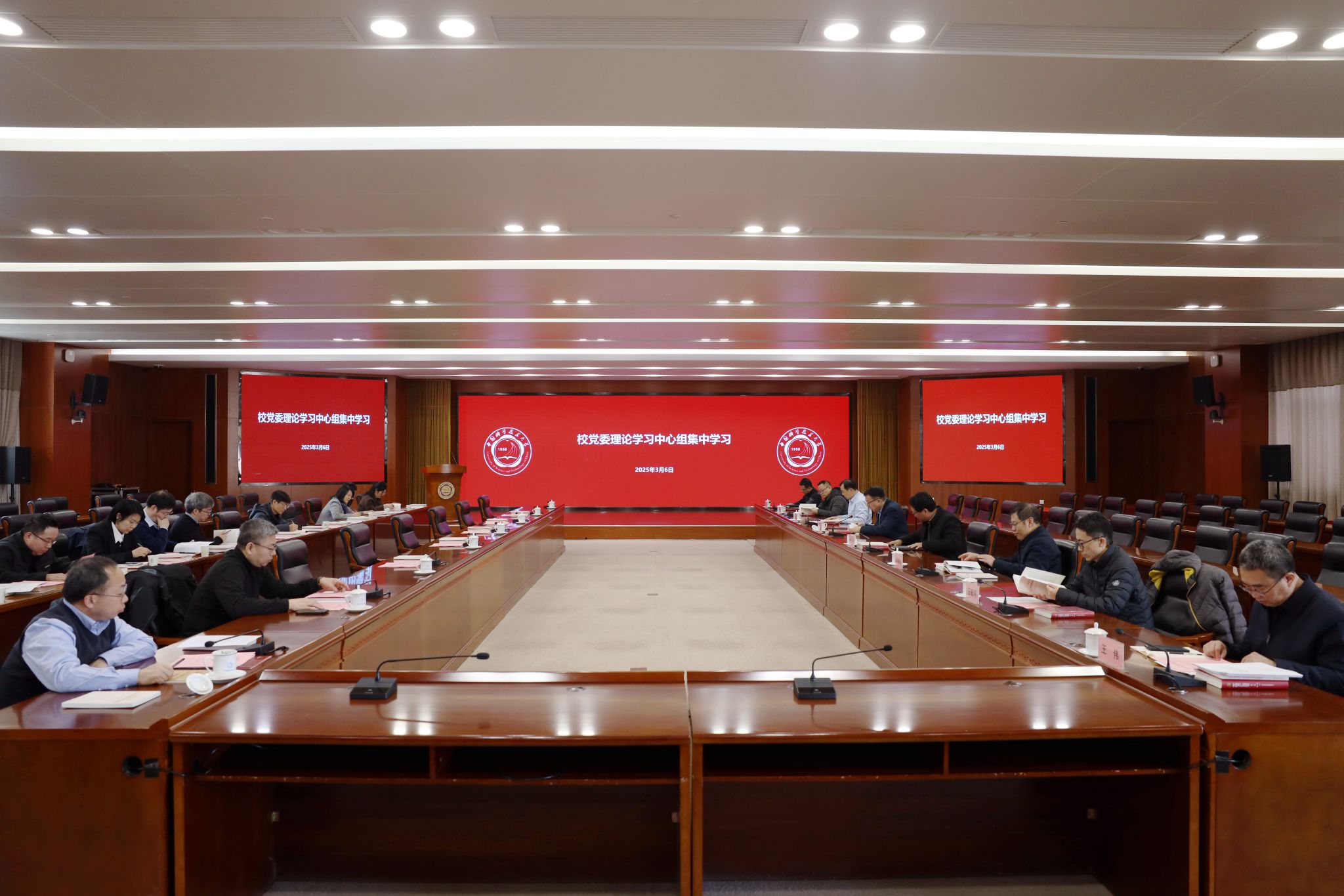 3月6日下午,校党委理论学习中心组在东活五楼报告厅召开2025年度第三次集中学习会。校党委书记舒歌群主持会议,在校校领导,党委委员、纪委委员,机关党群部门主要负责人参加会议。