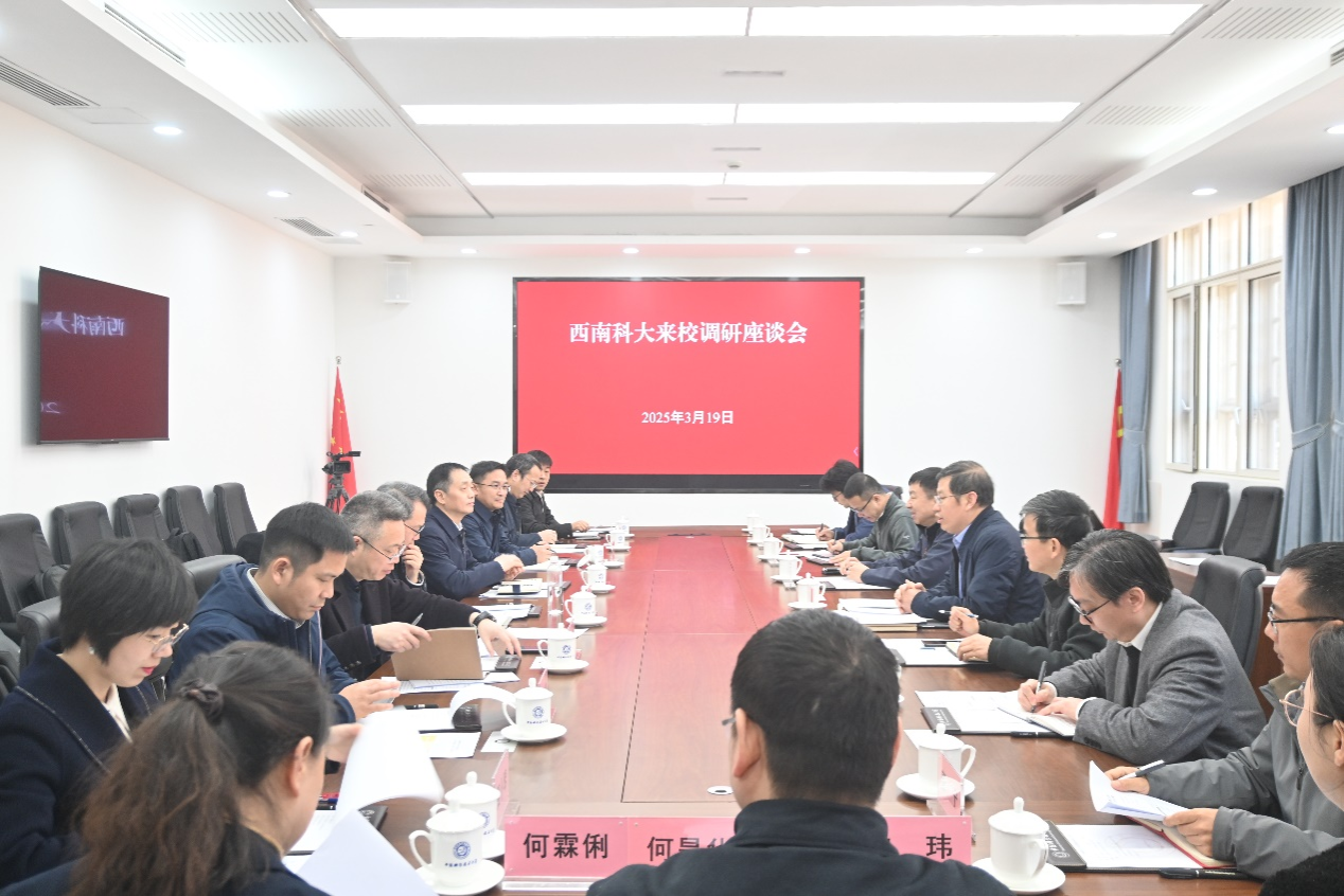 3月19日,西南科技大学党委书记杨俊辉、校长祝效华、副校长龚流柱一行来校调研交流,就进一步深化两校对口支援合作工作开展研讨。中国科大党委书记舒歌群,党委常委、党委组织部部长申成龙出席会议,有关部门负责同志参加会议。会议由中国科大党委副书记邓建松主持。