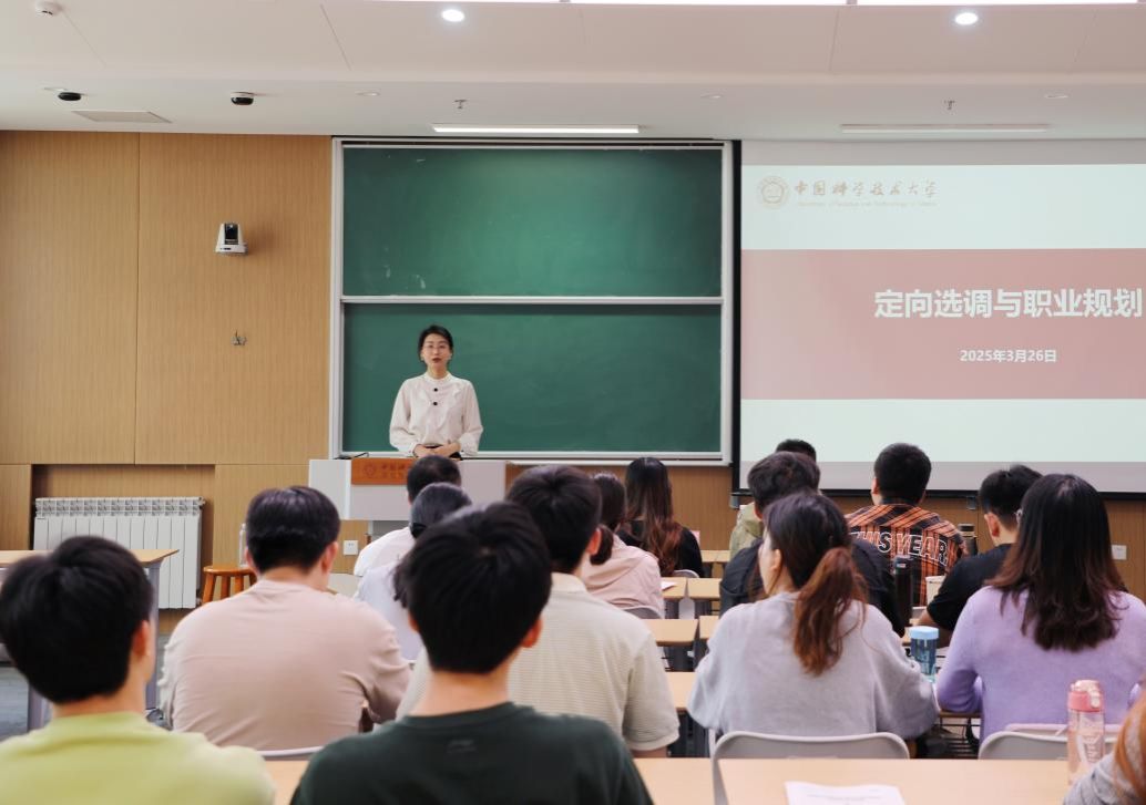 蒋文娟首先向同学们详细介绍了各省定向选调报考条件与招录政策,鼓励同学们在认真完成学业和科研任务的同时,要提升思想觉悟,牢记初心使命,将为人民服务的宗旨融入到人生价值追求之中;还要不断强化服务意识,积极参与组织团学工作,持续提升组织协调、综合应变等多方面的能力。通过介绍2022届、2023届、2024届毕业生定向选调考取情况,以及2024届毕业生中央选调考取情况、2025届毕业生中央选调面试入围等阶段性成绩,向同学们直观展现了公共事务学院学子努力拼搏、追求卓越的精神风貌。她表示,定向选调是公共事务学院毕业生独具特色的就业去向,这离不开学校党委一直以来的精心部署与各职能部门的关心指导。近年来,学院在学生思想政治教育、参加实习实践、承担社会责任、就业指导服务等方面多措并举,促进学生德智体美劳全面发展,为不断增强学生核心竞争力持续发力。她指出,同学们应当尽早做好职业规划,要对未来想要从事的职业积累必需的专业素质和能力,若坚定要走选调之路,就应在研究生阶段不断提升自身的综合能力;针对定向选调改革,同学们应当从心态、策略等多方面提早做好应对。