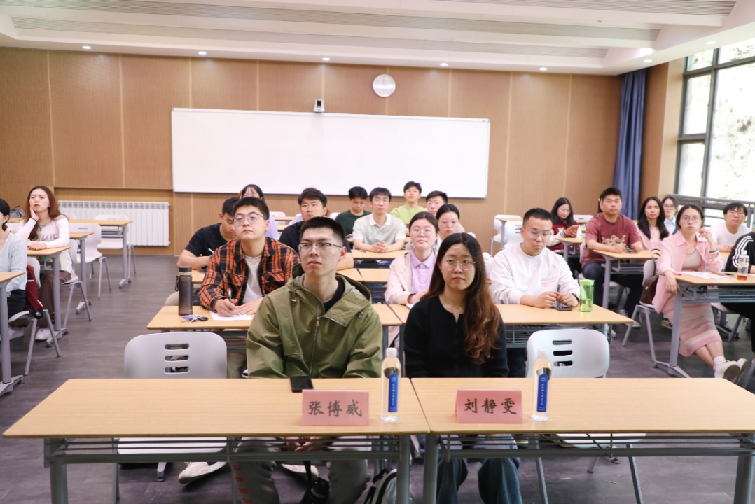 在互动交流环节,同学们围绕定向选调政策、规划策略及备考难点等进行深入交流和讨论。2022级法律硕士专业张博威、2022级公共管理专业刘静雯两位同学作为特邀嘉宾分享自身的备考经验,为低年级同学答疑解惑。现场气氛十分活跃。