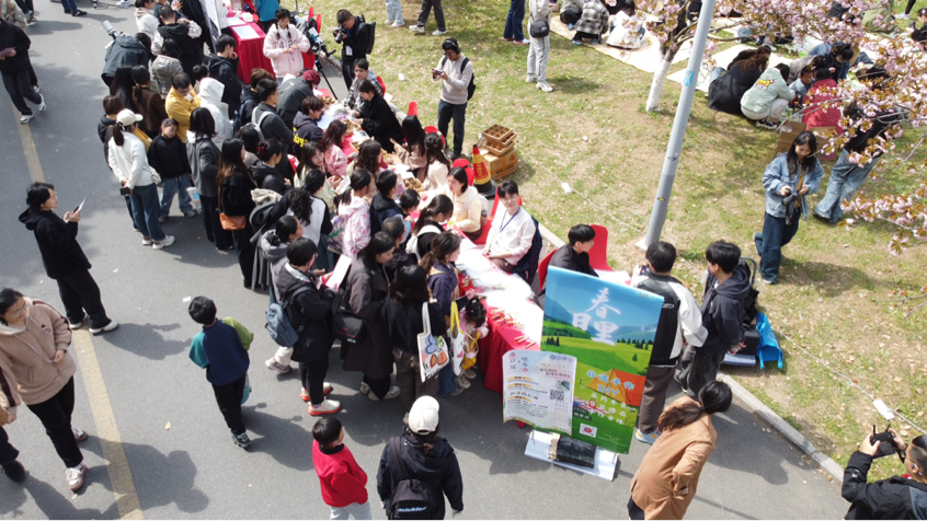 3月30日中午,第二届“春日里”非遗线下体验活动在东校区老北门外樱花大道拉开帷幕。活动吸引了千余名师生热情参与,大家在春意盎然的樱花树下共赴一场传统文化之约,亲身感受非遗手工艺的独特魅力。