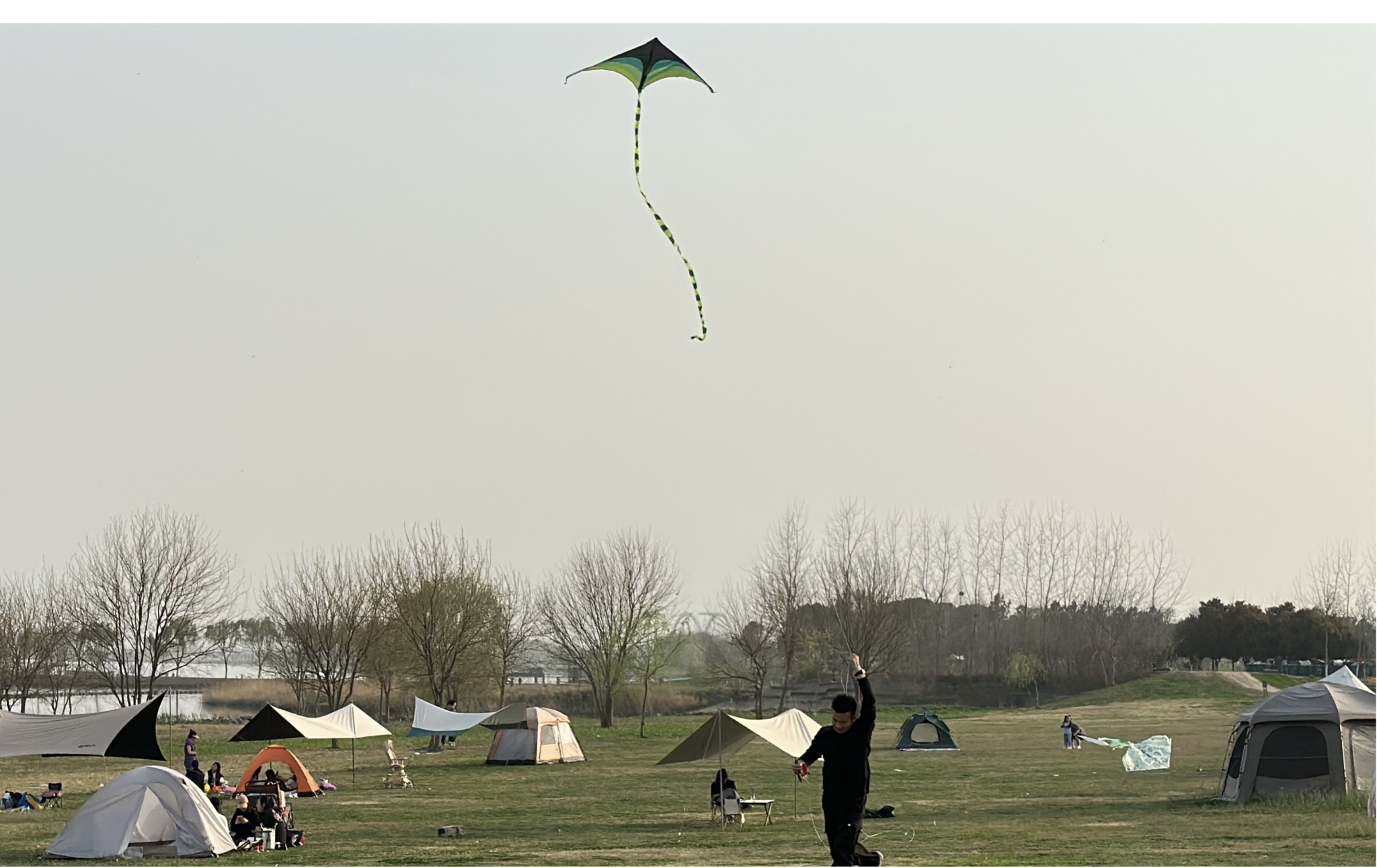 为确保活动顺利开展,班委们提前一周就开始精心筹备:采购了充足的矿泉水、时令水果和各类零食,租赁了露营天幕和折叠椅,更贴心准备了应急药箱等物资。活动当天,同学们乘坐大巴前往巢湖岸上草原露营地,一下车就立即投入热火朝天的营地建设中。搭建天幕帐篷时,起初大家不得要领,但在互相配合、不断尝试下,终于将天幕稳稳立起。这个共同克服困难的过程,让每个人都感受到了团队协作的快乐,也为后续活动营造了温馨舒适的环境。