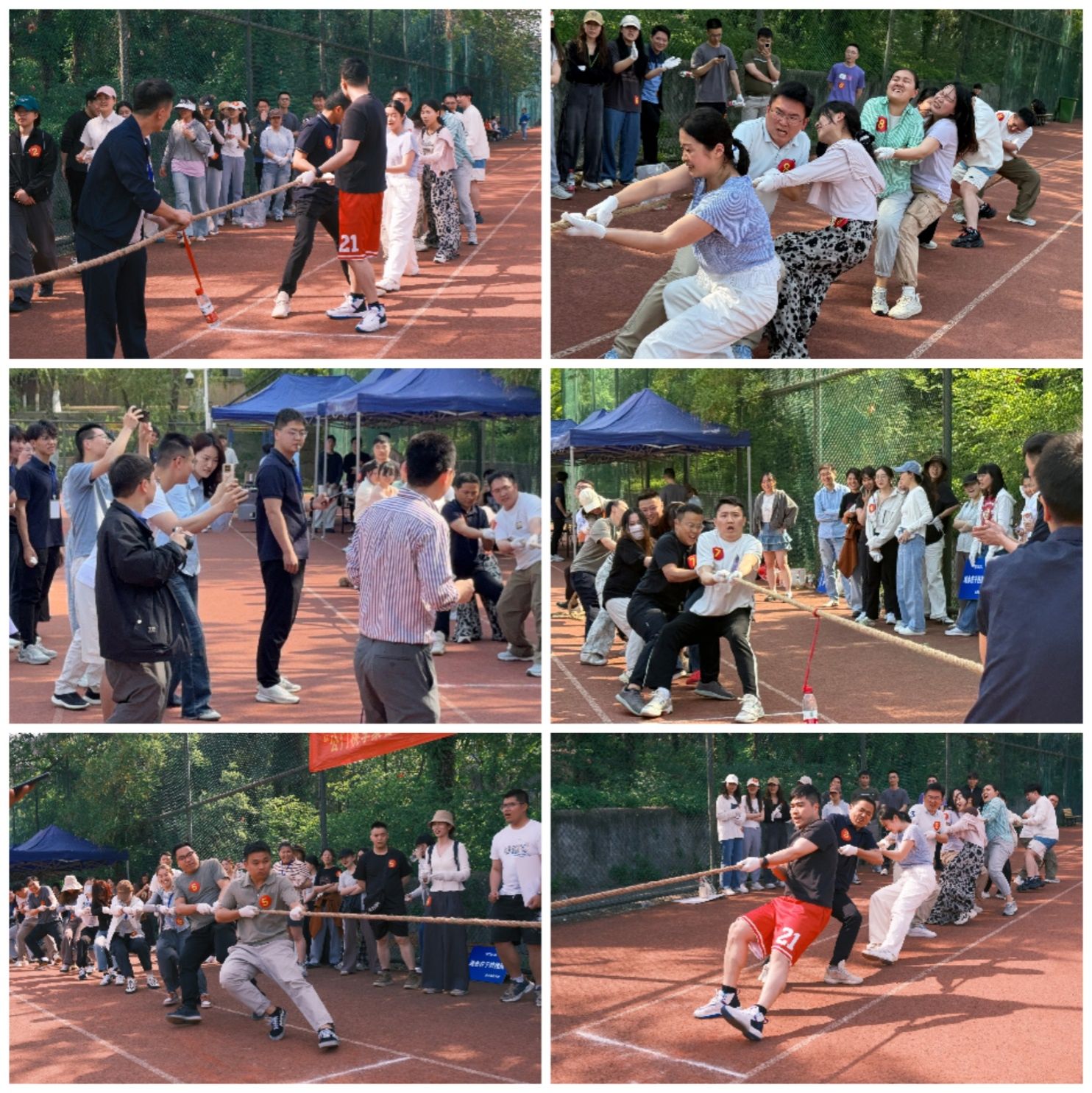 随着裁判一声哨响,比赛正式拉开帷幕,8支队伍,采用小组赛、半决赛、决赛三级赛制进行比拼。参赛队员们紧握绳索,重心后倾,口号声整齐有力——“一二!一二!”。绳索在力量的对抗中绷直如弦,双方队员咬紧牙关、齐心协力,以坚定的信念和默契的配合诠释“拧成一股绳”的团队精神。场边观众热情高涨,加油声、呐喊声此起彼伏,形成“台上奋力拼搏、台下全力助威”的热烈氛围。
