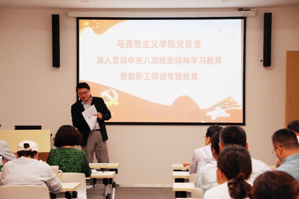 马克思主义学院党总支召开深入贯彻中央八项规定精神学习教育暨教职工师德师风专题教育学习会