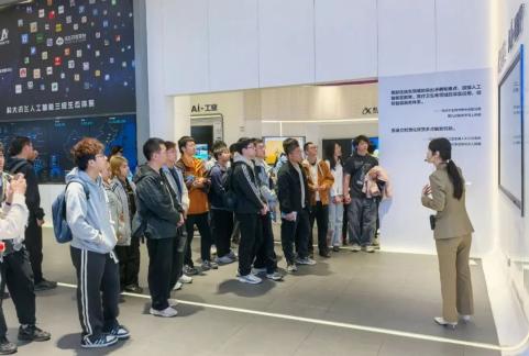 在安徽省未来网络重点实验室,同学们近距离观察了超高性能智能网络交换机、T比特级安全网关等设备,了解到实验室如何通过智能网络平面技术实现网络资源的灵活调度。