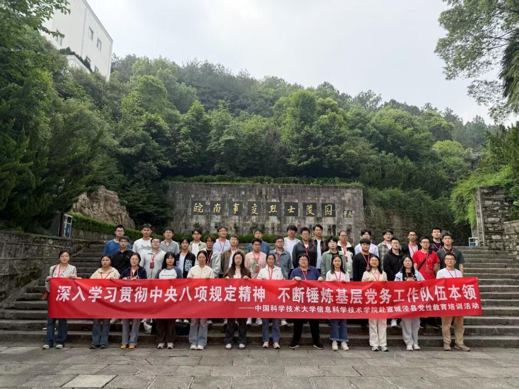 为深入贯彻中央八项规定精神学习教育,加强学院基层党支部工作队伍建设,坚定理想信念,强化党性修养,5月23日至25日,信息科学技术学院党委组织师生党支部委员、学生骨干代表、入党积极分子等30余人赴宣城泾县开展党性教育培训。