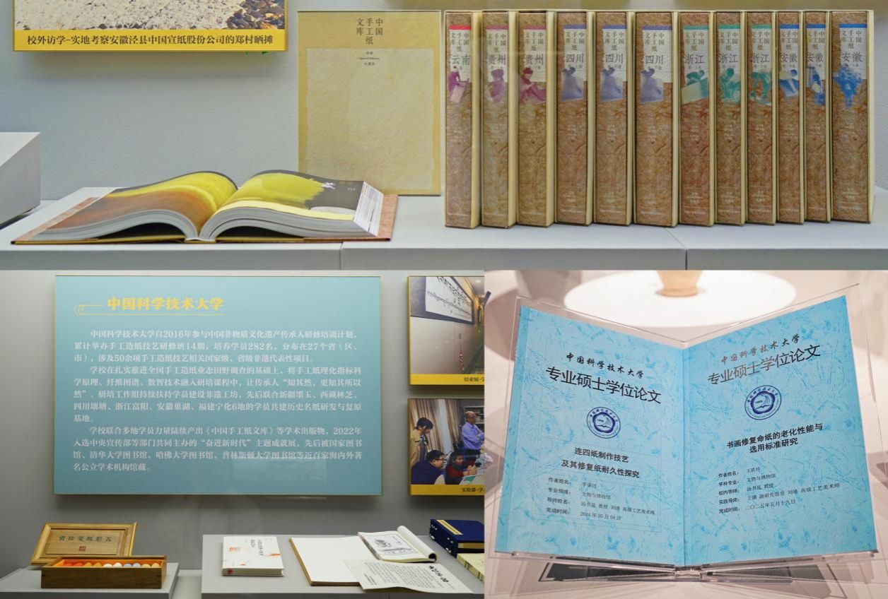 中国科学技术大学是学术成果展区被两部委特别遴选为10所独立设立展区的院校之一,展示成果包括研修班负责人汤书昆担任总主编的国家出版基金项目成果《中国手工纸文库》(13卷)、学员著作《中国传统加工纸笺制作技艺》、282位研修班学员共同完成的手工纸通讯录及纪念册、2本优秀研究生志愿者关于手工造纸科学化研究的学位论文、10件(套)研培学员优秀作品。