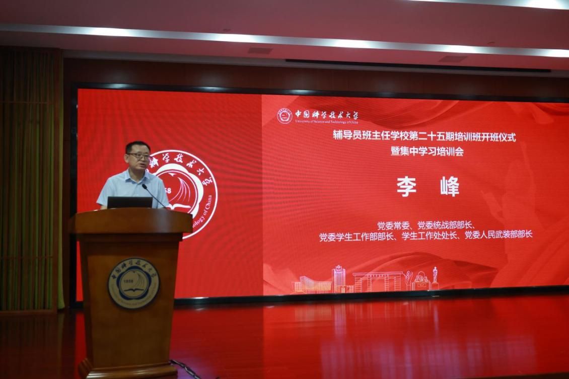 开班仪式结束后,李峰以《“聚焦立德树人,围绕学生发展”努力打造服务型、创新型、研究型学工体系》为题为新生辅导员班主任开展培训。李峰介绍了中国科大学生工作部(处)的基本情况,指出了学生工作的总体方向、任务目标、年度内容及基本要求,界定了辅导员与班主任的工作职责范畴,同时明确了学生工作部(处)为学生工作提供的各类资源保障与支持举措。李峰强调,新生辅导员班主任要与学生工作部(处)紧密协同,以立德树人为根本,充分发挥学工队伍的前哨作用,共同培育担当民族复兴大任的时代新人。