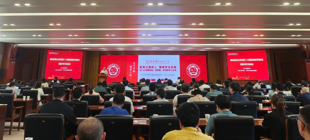 7月18日上午,学生工作部(处)在中国科大东区师生活动中心五楼报告厅举行辅导员班主任第二十五期培训班开班仪式暨集中学习培训会。校党委常委李峰出席开班仪式,学生工作部(处)副部(处)长金顺玉主持会议,全体2025级新生辅导员班主任、部分学生工作负责人、其他未参加过培训的在岗辅导员班主任参与本次活动。