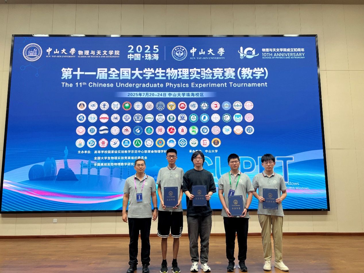 7月20日至24日,第十一届全国大学生物理实验竞赛(教学赛)(Chinese Undergraduate Physics Experiment Tournament,简称CUPET)在中山大学广州校区和珠海校区成功举办。中国科大代表队在珠海赛区荣获一等奖1项(基础A,王灿霖)、二等奖2项(基础A,樊九端;综合D,鲁佳锐和于秩浩),并荣获优秀组织奖。我校代表队再次在物理实验竞赛(教学)荣获佳绩。