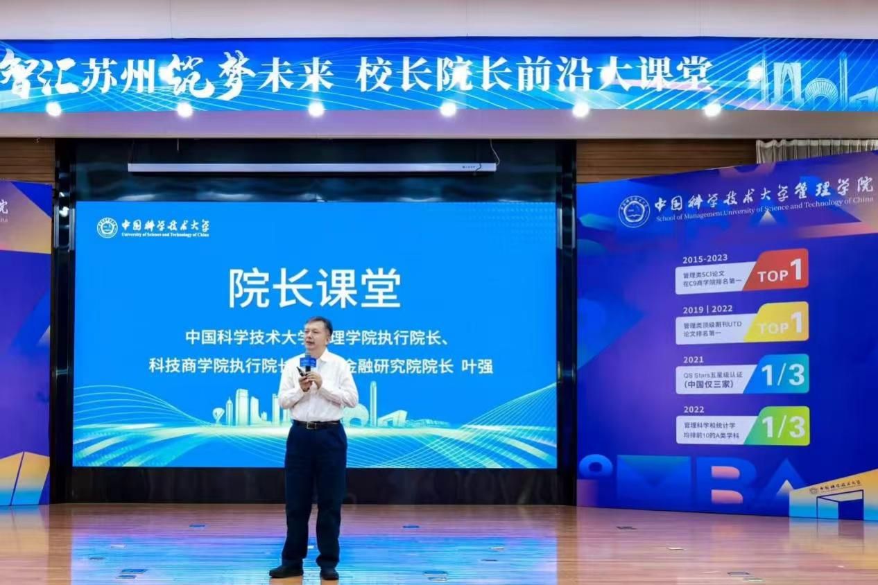 8月23日,中国科学技术大学管理学院、科技商学院与苏州高等研究院联合举办“2025 智汇苏州?筑梦未来校长院长前沿大课堂”。中国科学技术大学党委常委、副校长傅尧,中国科学技术大学苏州高等研究院执行院长闫立峰,中国科学技术大学管理学院执行院长、科技商学院执行院长、国际金融研究院院长叶强等领导出席活动并致辞。中国科学技术大学苏州高等研究院副院长倪瑞主持活动。