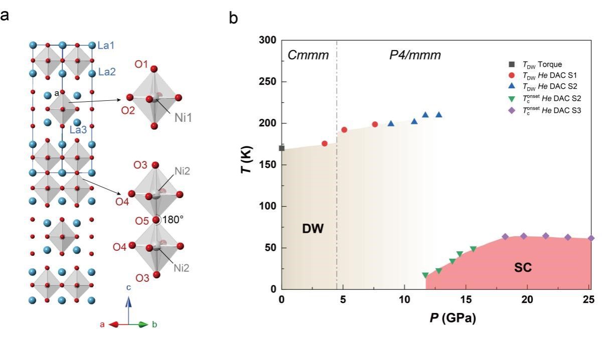 图1 La5Ni3O11的晶体结构(a)和高压相图(b)