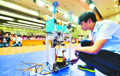 昨日的比赛,分为厨师机器人、助残机器人两场次,有21个厨师机器人队和15个助残机器人队参赛。(刘标/文余力/图)