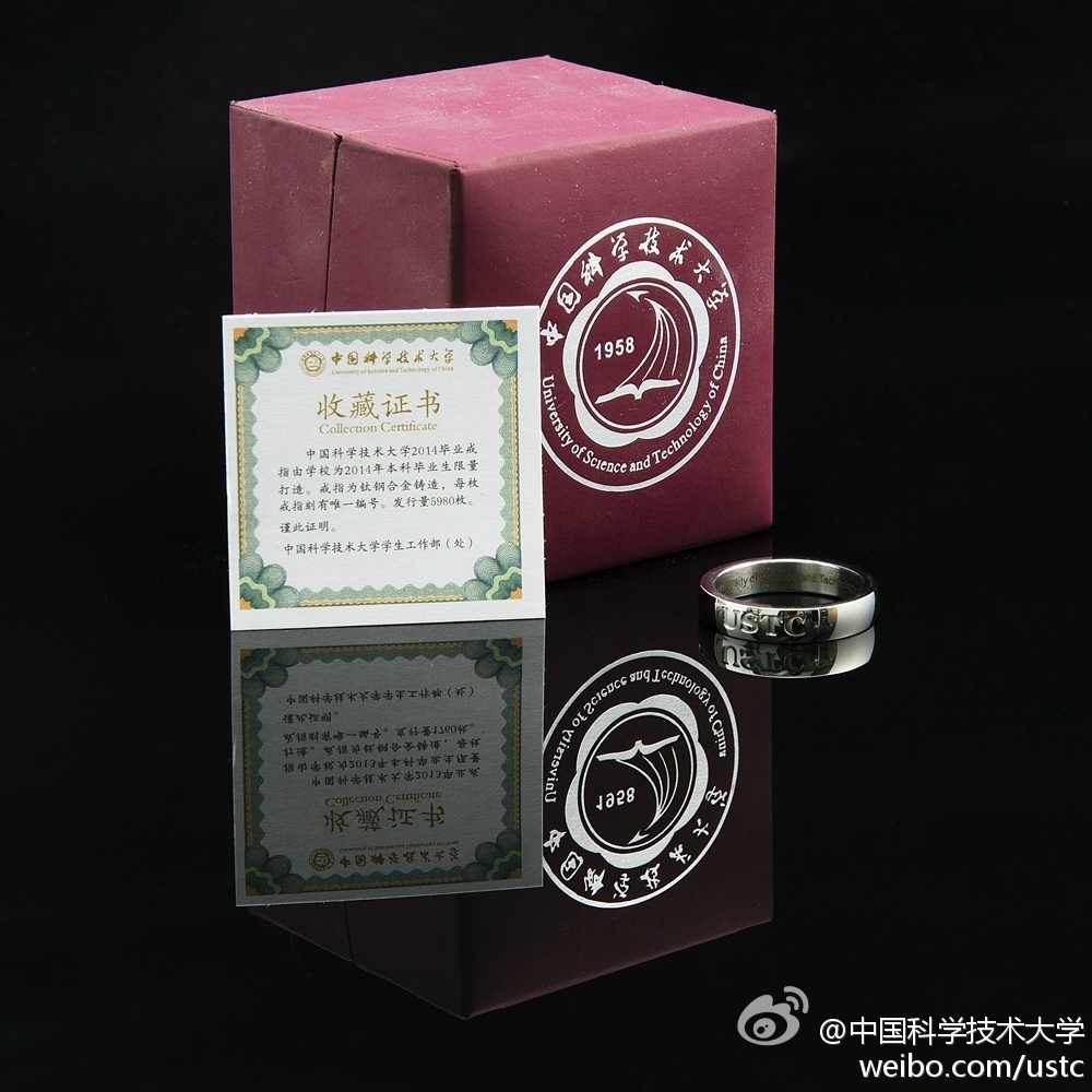 “去年只给1760名本科毕业生发放了毕业戒指,今年普及到研究生,一共发放了5980枚。”中国科大学工部的曹勇老师介绍,毕业戒指是限量打造,材质是钛钢合金,每枚造价约几十元。而创意是模仿美国西点军校,目的是给毕业生们一个青春纪念。