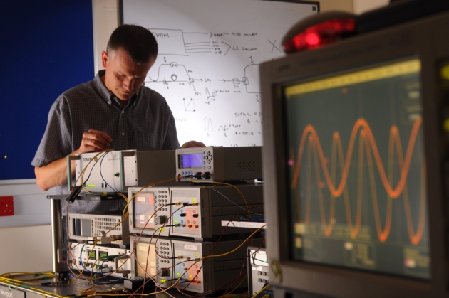 Engineer Andrew Sharpe works on Toshiba’s quantum key distribution system in Cambridge, UK. |
