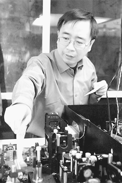 潘建伟在实验室做实验。