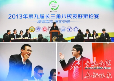 异地恋是爱情的试金石,还是爱情的绊脚石;当前中国应不应该实施延迟退休制度;出国深造对本国建设是利还是弊?……今天上午,第九届长三角八校辩论赛在中科大举行,来自东南大学、复旦大学、华东师范大学、南京大学、上海交通大学、同济大学、浙江大学和中科大8所长三角地区“985工程”高校的高材生,针对当前热点话题展开了一场唇枪舌剑的辩论赛。