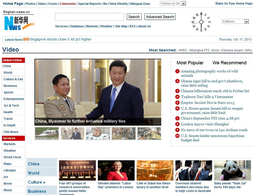 新华网英文频道 http://news.xinhuanet.com/english/video/2013-10/17/c_132806659.htm