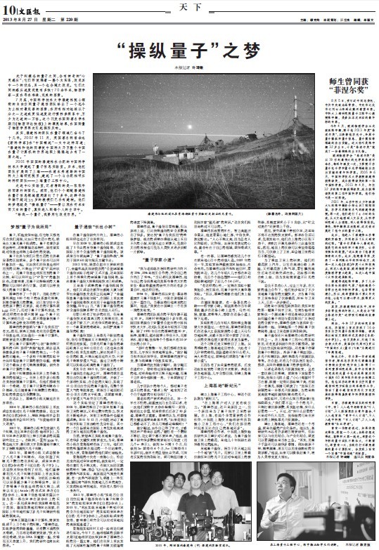 其实,在潘建伟的团队中,有许多非常优秀的年轻人,只是没与“师生菲涅尔奖”这样吸引眼球的故事搭上边。
