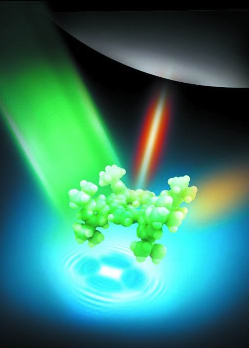 光的频率在散射后会发生变化,而频率的变化情况取决于散射物质的特性,这就是物理学上曾获得诺贝尔奖的著名的“拉曼散射”。“拉曼散射光中包含了丰富的分子振动结构信息,不同分子的拉曼光谱的谱形特征各不相同。因此,正如通过人的指纹可以识别人的身份一样,拉曼光谱的谱形也就成为科学家们识别不同分子的‘指纹’光谱。”论文通讯作者之一、中国科大教授董振超介绍说,拉曼光谱已经成为物理、化学、材料、生物等领域研究分子结构的重要手段。