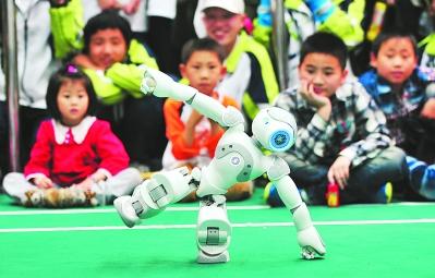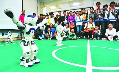 5月18日,NAO仿人智能机器人在表演。当日,为期两天的科技周活动在中科大东、西两个校区同时举行。活动期间,中科大国家同步辐射实验室、火灾科学国家重点实验室、信息科学技术科普点、生命科学科普点、核科学技术科普点等对市民开放,吸引了众多市民带着孩子前来参观。余力 摄