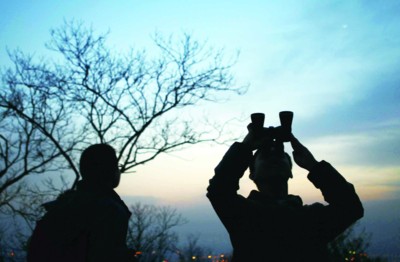 近期,一颗名为“泛星”(C/2011L4)的非周期大彗星过近日点,亮度达2星等,肉眼可见。受天气和空气条件影响,合肥的追星者尚未拍摄到清晰的照片。不过,如果大气透明度好的话,本月中下旬仍是观测该彗星的好时机。图为中国科技大学的天文爱好者在大蜀山上观星。(记者 卓也/摄)