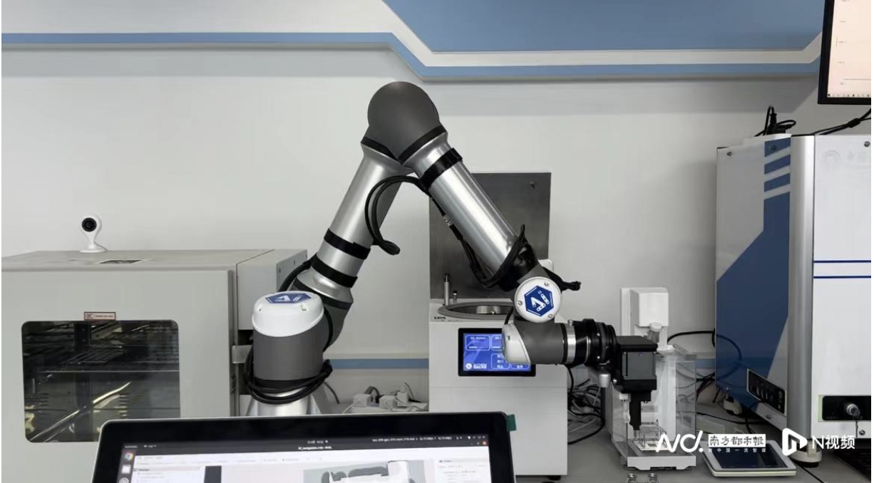 近日,南都记者来到中科大精准智能化学实验室,看“小来”在实验室来回穿梭,不时伸出机械手臂将试管放入仪器中,它正在进行的是一款芬顿催化剂的创制工作。