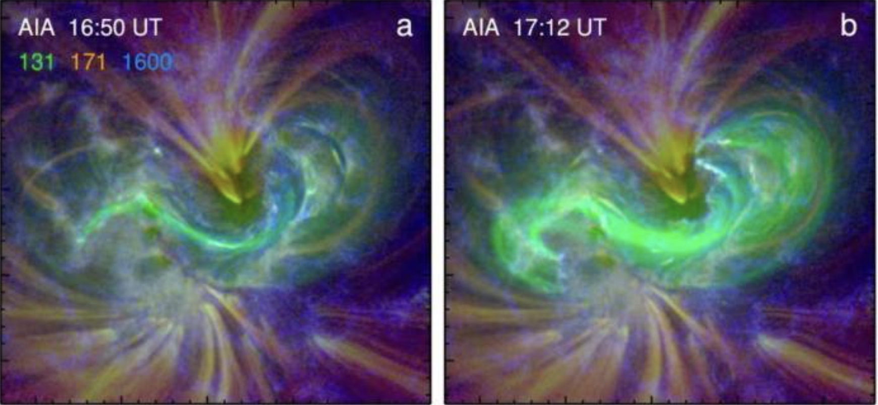 据介绍,这一研究揭示了以前鲜有报导的复杂三维磁重联的细节过程及其在日冕物质抛射形成中的重要作用,同时为行星际空间复杂抛射结构的产生提供了新的物理解释,也为空间天气预报带来启示。