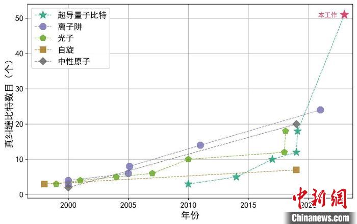 量子真纠缠态比特数目的发展历史。 中国科大 供图