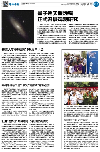 星报讯 9月17日,记者从中国科学技术大学获悉,中国科学技术大学—紫金山天文台大视场巡天望远镜(即墨子巡天望远镜)正式启用,成功发布仙女座星系图片,标志着经过一个月左右的设备运行测试,望远镜设备基本达到设计标准,已经可以开展天文观测研究。