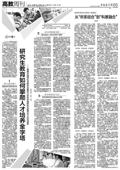 这一时期,“科教融合、争创一流”拥有“升级版”使命:让最新的科技成果尽早进入高校课堂;让更多的学生积极参与高质量的科研实践;与科研院所共建科教融合学院;实现学校、研究机构优势互补,共同承担国家重大任务,解决“卡脖子”问题;科技成果转化实现“沿途下蛋”,高质量地贡献中国式现代化建设。